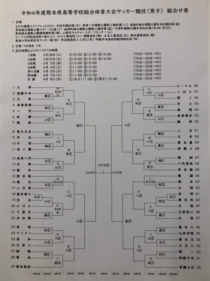 高校総体サッカー 熊本県大会が28日より開催されています!